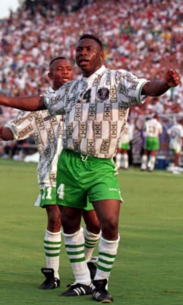 Nigeria followed in the footsteps of Cameroon at the 1994 World Cup, putting on some scintillating performances and playing their way into the hearts of millions worldwide. They burst onto the scene with their 3-0 opening win over Bulgaria, made memorable for Rashidi Yekini’s emotional goal net celebration after scoring his nation’s first World Cup goal. They then took eventual finalists Italy right until the death in the Last 16.