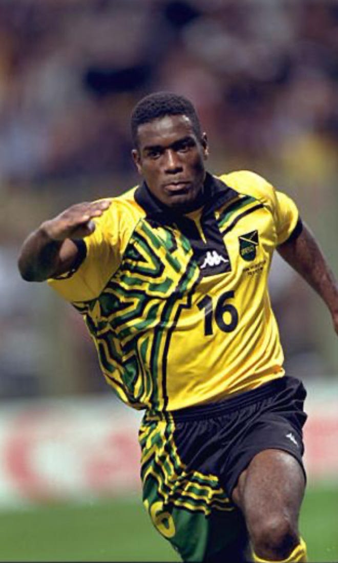 The Reggae Boyz brought a loud and colourful vibe to the World Cup of 1998 and their kits were no different. Banana yellow with an intricate curved design of green and black really helped them to stand out. The thick black collar emblazoned with the white Kappa logo was a nice additional touch.