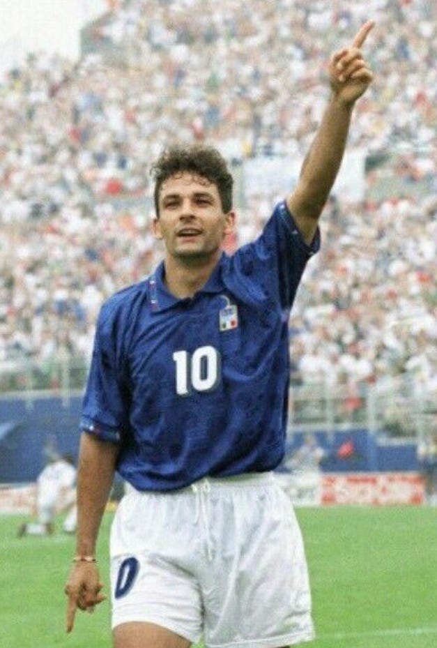 Italy’s run to the final in 1994 was punctuated by the up and down story of ‘Il Divin Codino’ (The Divine Ponytail), Roberto Baggio. Removed from the pitch after goalkeeper Gianluca Pagliuca was sent off in the group stages, Baggio returned as the hero of the knockout stages, scoring key goals in the Last 16, quarters and semis. He then went on to miss the decisive penalty in the final defeat by Brazil in a moment that would cement his place in history, although not exactly as he would have wanted.