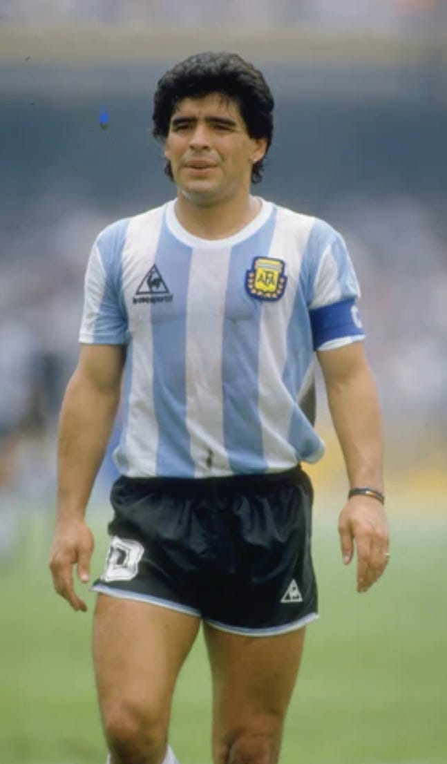 It is something of a shame that when Diego Maradona made the headlines for all the right and wrong reasons simultaneously in Argentina’s quarter-final defeat of England, he was wearing their dark blue away kit rather than this beauty of a home design. He did try and make just as magical a moment in the semi-final against Belgium but the context just wasn’t as strong.