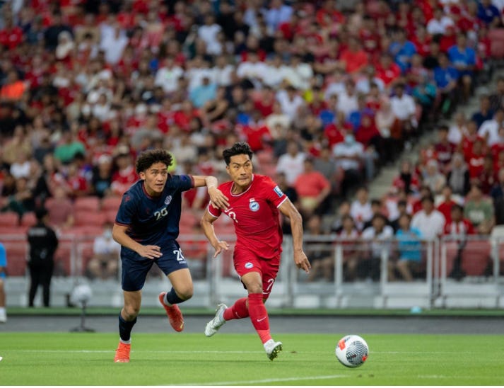 Under the floodlights at the National Stadium in Singapore, 10,355 fans arrived to watch a crucial match for both of their nations. Perhaps unsurprisingly, Singapore started as the stronger team and spent most of the early period attacking. They were unfortunate not to take the lead on a number of occasions, narrowly missing the target from, or just failing to make contact with, good crosses into the box.